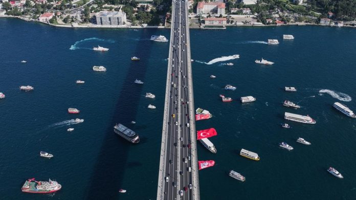 Fetullahçı Terör Örgütü`nün (FETÖ) 15 Temmuz 2016`daki darbe girişiminin 9. yılı dolayısıyla, İstanbul Valiliği, Sahil Güvenlik Marmara ve Boğazlar Bölge Komutanlığı, Kıyı Emniyeti Genel Müdürlüğü ve 15 Temmuz Derneği işbirliğinde İstanbul Boğazı`nda kortej geçişi düzenlendi.